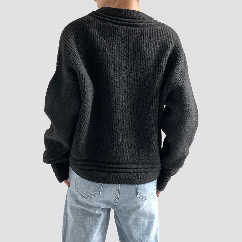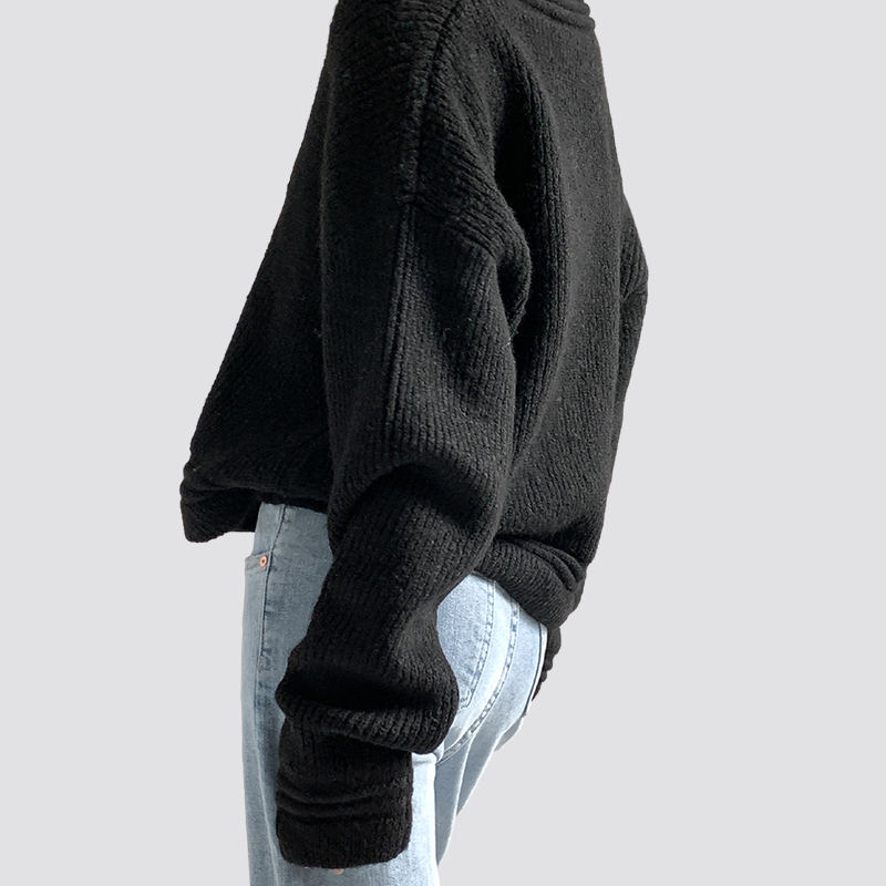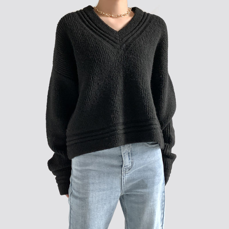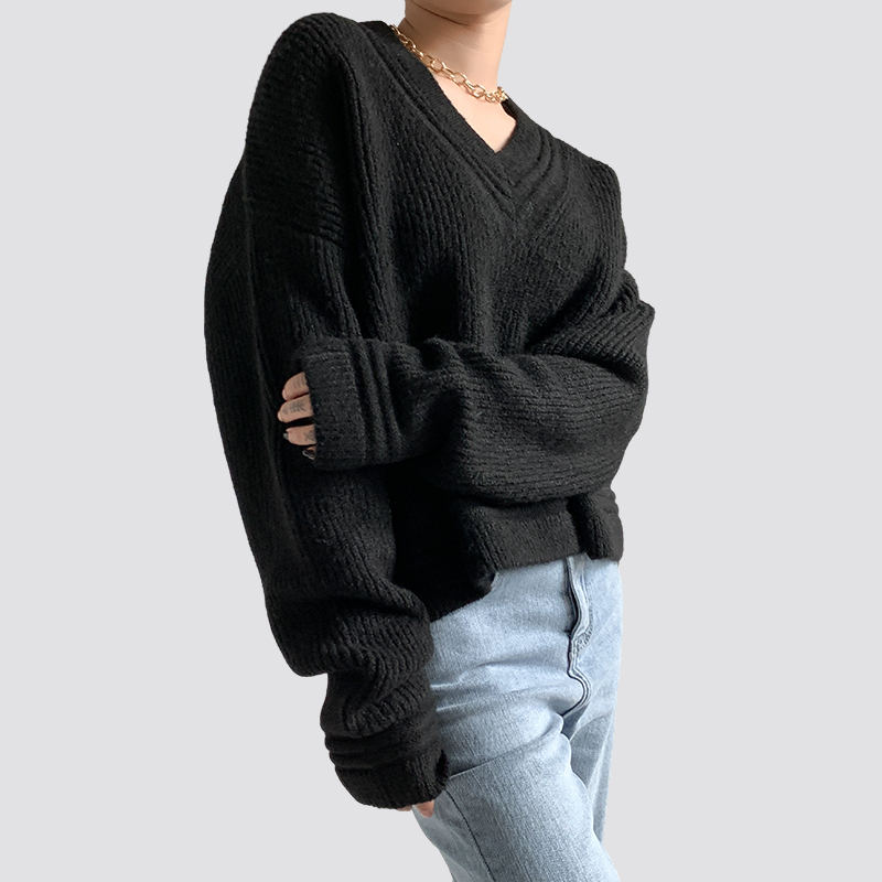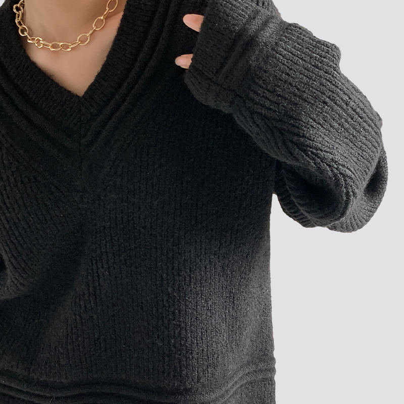 A cég elsősorban gyermek-, férfi- és női kötött pulóvereket gyárt. Fekete bordás, bő, V-nyakú, hosszú ujjú női pulóver company in China.
