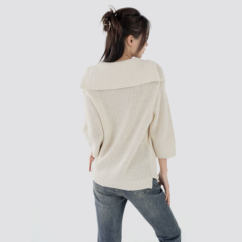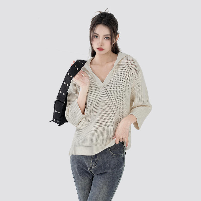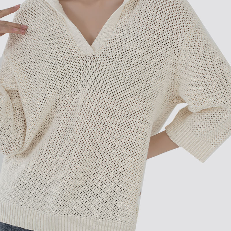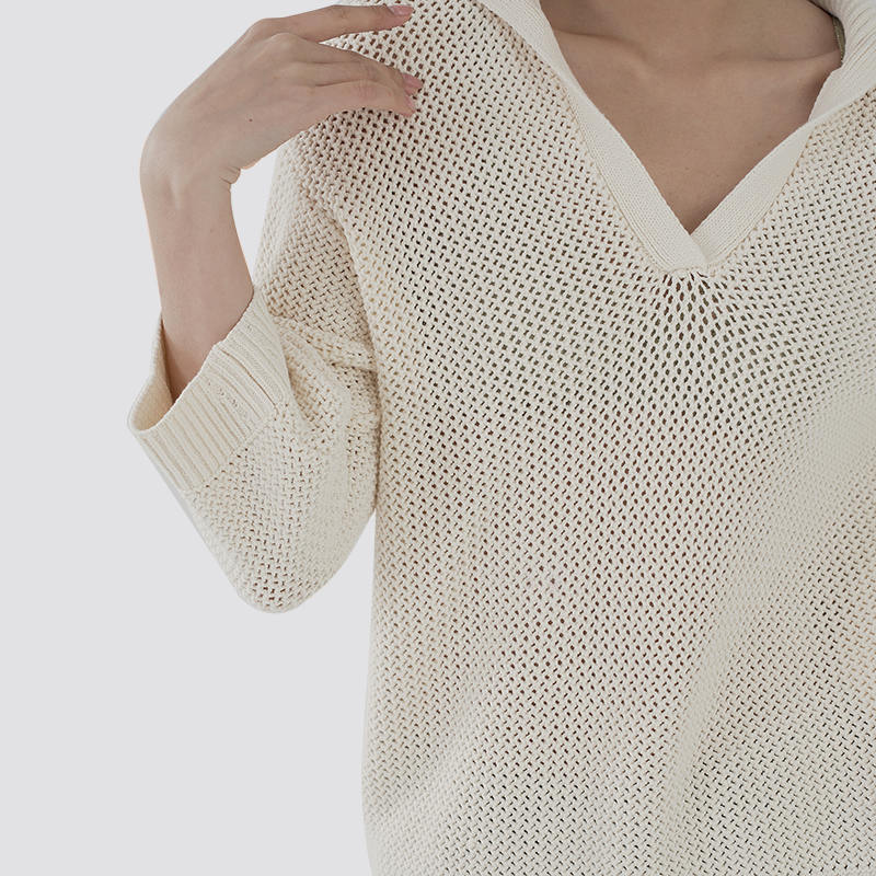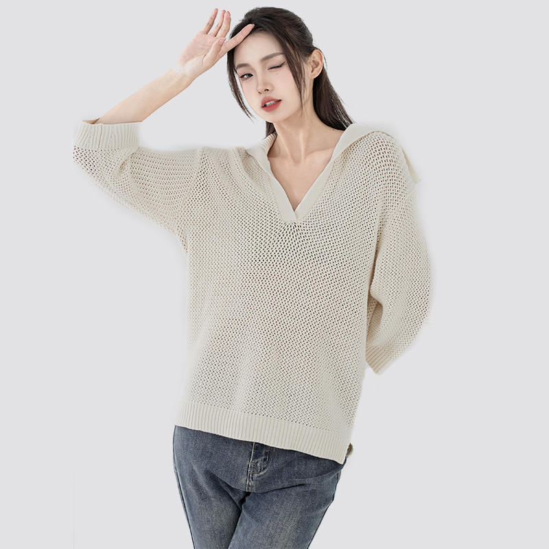 A cég elsősorban gyermek-, férfi- és női kötött pulóvereket gyárt. Női V nyakú kapucnis pulóver hálós horgolt, hosszú ujjú pulóver company in China.