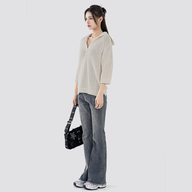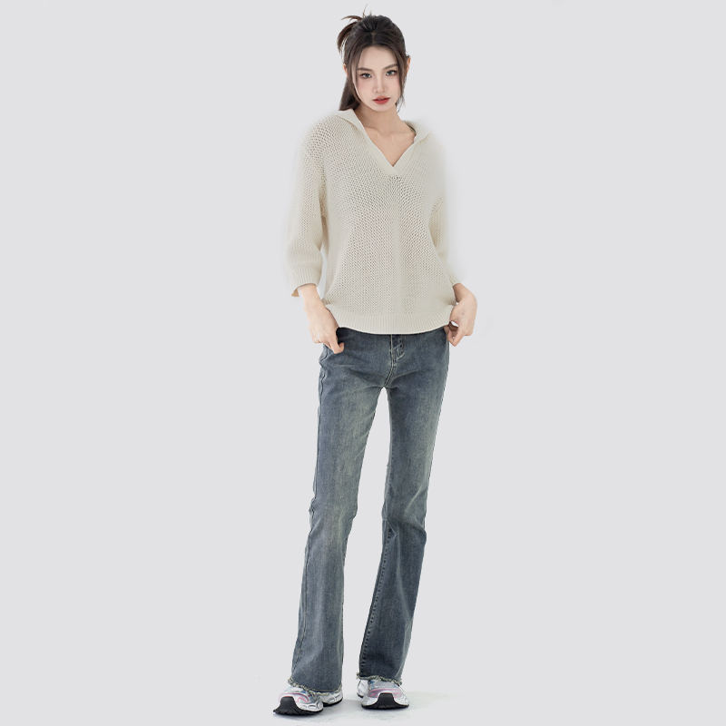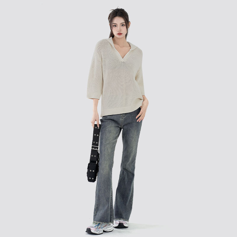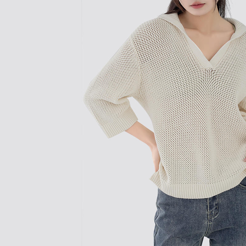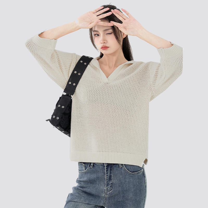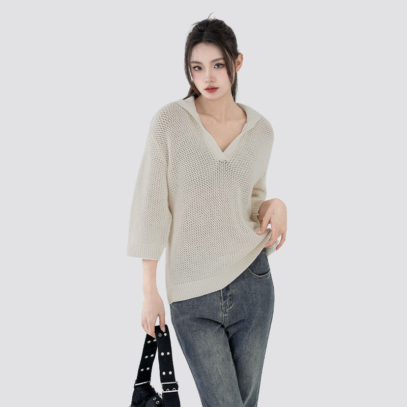A cég elsősorban gyermek-, férfi- és női kötött pulóvereket gyárt. Női V nyakú kapucnis pulóver hálós horgolt, hosszú ujjú pulóver company in China.